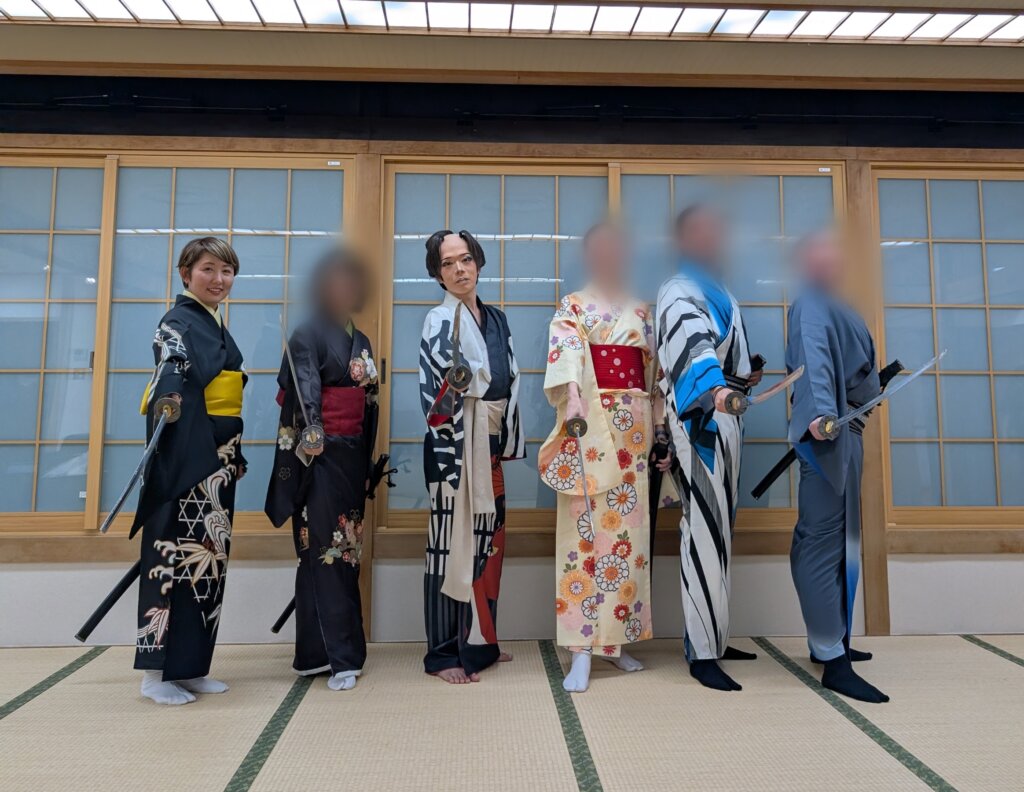 La experiencia empezó con algo que me hizo muchísima ilusión: nos vistieron con kimono y después aprendimos una pequeña coreografía con el mismísimo Maestro Haruo Nanjo (南條はる雄, @haruo_tee), que lleva en los escenarios desde que era niño.